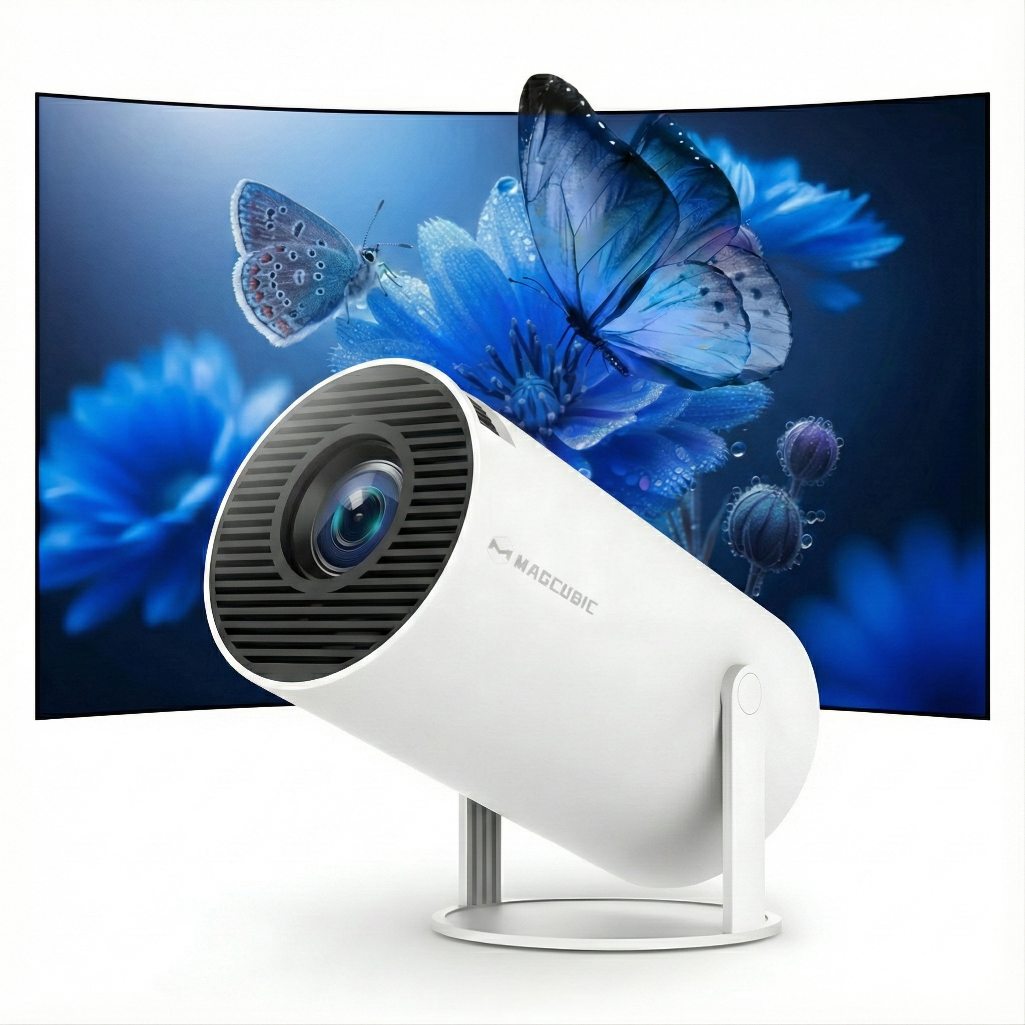 The Magcubic HY300 features native 720P HD quality with 4K decoding, 290 ANSI brightness, and a flexible 180° rotating design for effortless wall or ceiling projection. With Android 11, Wi-Fi 6 screen casting, Bluetooth 5.0 audio, and auto-keystone correction, it delivers sharp, stable, and vibrant visuals in seconds. Perfect for movies, gaming, or creating a cozy room atmosphere.